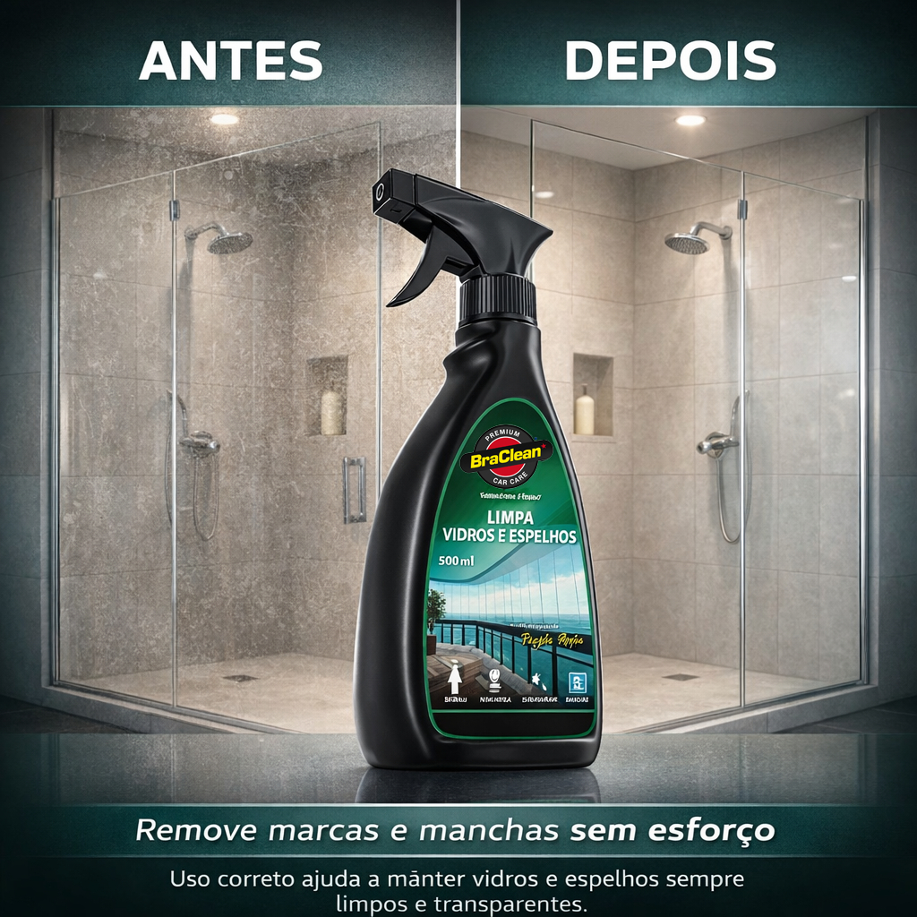 Melhor Limpa Vidros 500ml para espelhos janelas e para-brisas limpeza rápida BraClean