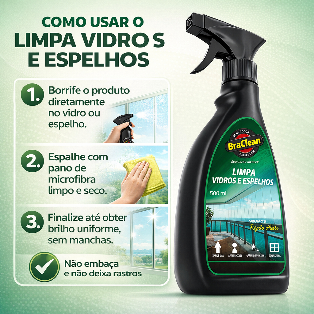 Melhor Limpador de Vidros e Espelhos 500ml uso doméstico e automotivo sem manchas BraClean