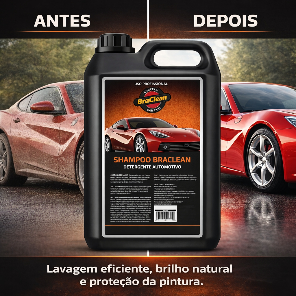 O Shampoo Neutro 5 Litros BraClean foi desenvolvido para lavar veículos com pH equilibrado, ajudando a remover sujeira sem ser agressivo à pintura, películas, ceras e selantes, quando utilizado corretamente. É ideal para uso profissional, em lava-rápidos e estéticas automotivas que desejam um shampoo versátil para diferentes tipos de acabamento. BENEFÍCIOS • Ajuda a remover sujeira sem agredir ceras e selantes aplicados. • Indicado para todos os tipos de cores e acabamentos, inclusive veículos protegidos. • Boa formação de espuma, facilitando a lavagem. • Alto rendimento graças à embalagem de 5 litros. INFORMAÇÕES TÉCNICAS • Marca: BraClean • Produto: Shampoo Neutro • Volume: 5 litros • Categoria: shampoo automotivo neutro • Aplicação: lavagem de veículos em geral • Uso: profissional e automotivo • Conteúdo da embalagem: 1 galão 5 litros COMO USAR Dilua o shampoo em água conforme orientação do rótulo. Enxágue o veículo para tirar o grosso da sujeira. Lave com luva ou esponja macia, de cima para baixo. Enxágue bem e seque com pano de microfibra. FAQ Remove ceras da pintura? Por ser neutro, é menos agressivo que shampoos mais fortes, ajudando a preservar proteções já aplicadas. Pode ser usado em moto e caminhão? Sim, desde que respeitada a diluição adequada. POR QUE COMPRAR O SHAMPOO NEUTRO 5 LITROS BRACLEAN • Shampoo coringa para uso diário em lava-rápidos. • Versátil, seguro e econômico para vários tipos de acabamento.