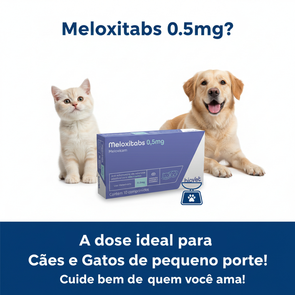 🌟 Meloxitabs 0,5mg: Alívio Rápido e Eficaz para a Dor e Inflamação de Cães e Gatos! 🐾 Dê ao seu melhor amigo a qualidade de vida que ele merece! O Meloxitabs 0,5mg é a solução veterinária de alta qualidade para tratar a dor e a inflamação causadas por problemas articulares, lesões e procedimentos cirúrgicos em cães e gatos. Com a dose ideal para pets de pequeno porte, você garante um tratamento seguro e eficaz sob orientação veterinária. 🔥 Ação Potente Contra Dor e Inflamação O Meloxitabs tem como princípio ativo o Meloxicam, um Anti-inflamatório Não Esteroidal (AINE) de última geração. - Ação Analgésica: Alivia rapidamente a dor, permitindo que seu pet se movimente com mais conforto. - Ação Anti-inflamatória: Reduz o inchaço e a vermelhidão associados à inflamação, especialmente nas articulações. - Seletividade (COX-2): Desenvolvido para atuar com maior foco na inflamação, minimizando o risco de efeitos colaterais gastrointestinais (quando comparado a AINEs menos seletivos). 🦴 Principais Indicações de Uso Este medicamento é a escolha ideal para: - Doenças Articulares Crônicas: Auxilia no tratamento de osteoartrite, artrite e outras doenças degenerativas. - Pós-Cirúrgico: Alívio essencial da dor após cirurgias ortopédicas ou gerais. - Lesões e Traumas: Tratamento de edemas, luxações e outras inflamações agudas do sistema musculoesquelético. - Melhora da Mobilidade: Ajuda a devolver a alegria e a capacidade de brincar ao seu pet. Por Que Escolher Meloxitabs 0,5mg? - Dosagem 0,5mg: Perfeita para cães e gatos de pequeno porte, facilitando a administração precisa. - Comprimidos Palatáveis: Possui um sabor que agrada o paladar de cães e gatos, tornando o momento da medicação mais fácil e menos estressante. - Ampla Indicação: Uso seguro e eficaz tanto em cães quanto em gatos (com atenção às doses específicas). 💊 Informações Técnicas e Dúvidas Frequentes Princípio Ativo: Meloxicam 0,5mg. Apresentação: Cartela com 10 comprimidos (Atenção: especifique a quantidade exata da sua oferta). Uso: Oral. ⚠️ AVISO IMPORTANTE: ESTE MEDICAMENTO É DE USO VETERINÁRIO. - Como Administrar? A dosagem é calculada pelo peso do animal e indicada pelo veterinário. Os comprimidos são divisíveis, facilitando o ajuste da dose exata. - Posso usar em filhotes ou gestantes? Não é recomendado o uso em animais com menos de 6 semanas de idade, fêmeas gestantes ou lactantes, ou animais com problemas renais/hepáticos graves, a menos que o veterinário decida o contrário. Garanta já o seu Meloxitabs 0,5mg e proporcione o conforto que o seu pet merece!