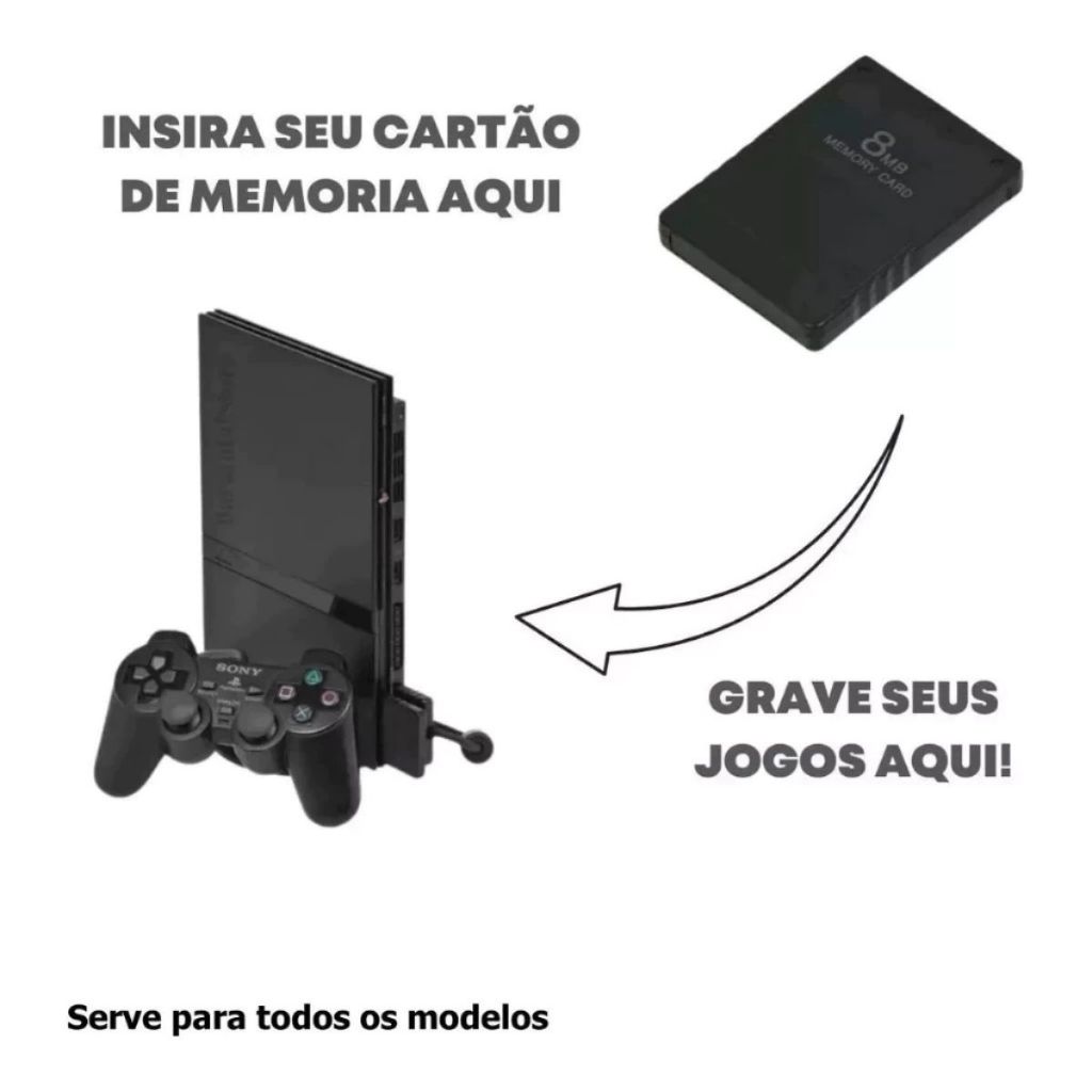 📌 Descrição do Produto 🕹️ Memory Card 8MB para PlayStation 2 (PS-2) + O-P-L Compatível com todos os modelos do PlayStation 2 (Slim e Fat). Ideal para salvar seus jogos, perfis, configurações e aproveitar ao máximo o console. Além de funcionar como cartão de memória original, já vem com o OPL (Open PS2 Loader), permitindo rodar jogos diretamente de HD externo, USB ou rede, tornando sua experiência ainda mais completa! ✅ Características do Produto Capacidade: 8MB Compatível com todos os modelos do PS2 (Slim e Fat) Produto novo e de excelente qualidade Já configurado com OPL para facilitar o uso Salva jogos, perfis e configurações sem perda de dados Fácil instalação e pronto para usar 🎮 Vantagens ✔️ Acessório essencial para o PlayStation 2 ✔️ Compatibilidade total com todos os jogos ✔️ Rápido e seguro para salvar progresso ✔️ Com OPL: mais praticidade e opções de uso 📦 Conteúdo da Embalagem 1x Memory Card 8MB para PS2 com OPL 🔎 Palavras-chave para busca: memory card ps2 8mb, cartão de memória playstation 2, memory card opl, cartão de memória ps2 slim fat. O QUE É: Produto patch editado por equipe própria, portanto não se trata de cópias ilegais ou não autorizada. Não violando nenhum direito autoral ou intelectual estando dentro das regras que o site tem de acordo com a lei de Direitos Autorais, Lei de Nº 5.988 de 14/12/1973 e lei de Nº 9.610 de 19/12/199.