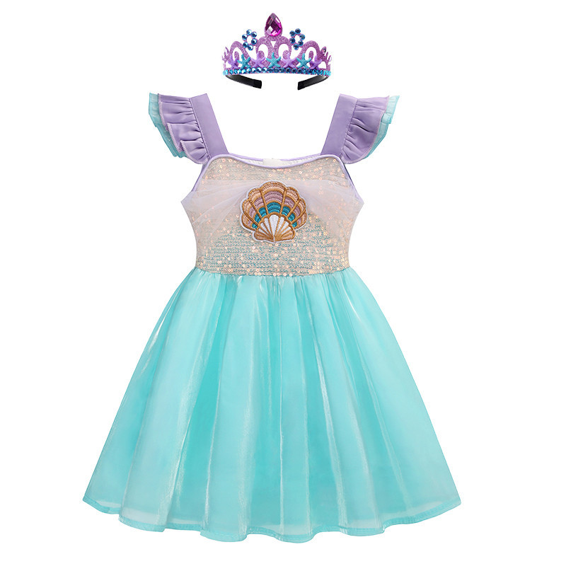 Meninas Nova Ariel Princess Dress Fancy Vestidos De Sereia Estilo Coreano Para Crianças De 2-8 Anos De Idade