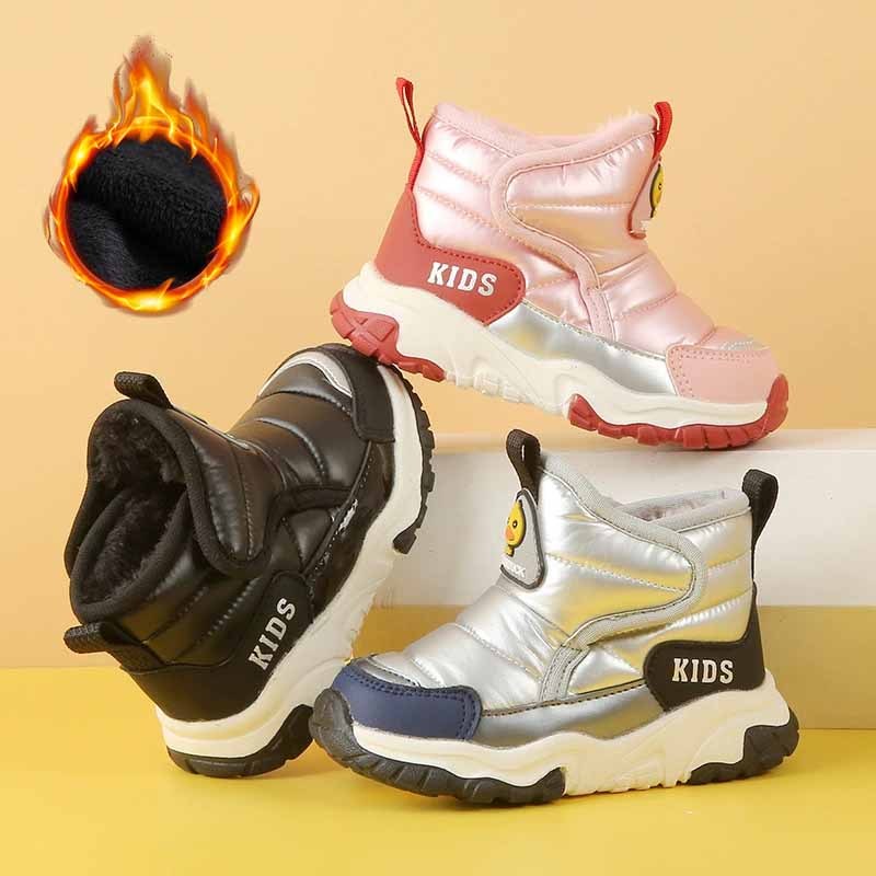 Meninos Botas De Neve Acolchoadas Meninas Grossas Inverno Crianças Formadores Quentes Algodão Pelúcia Pele Esportes