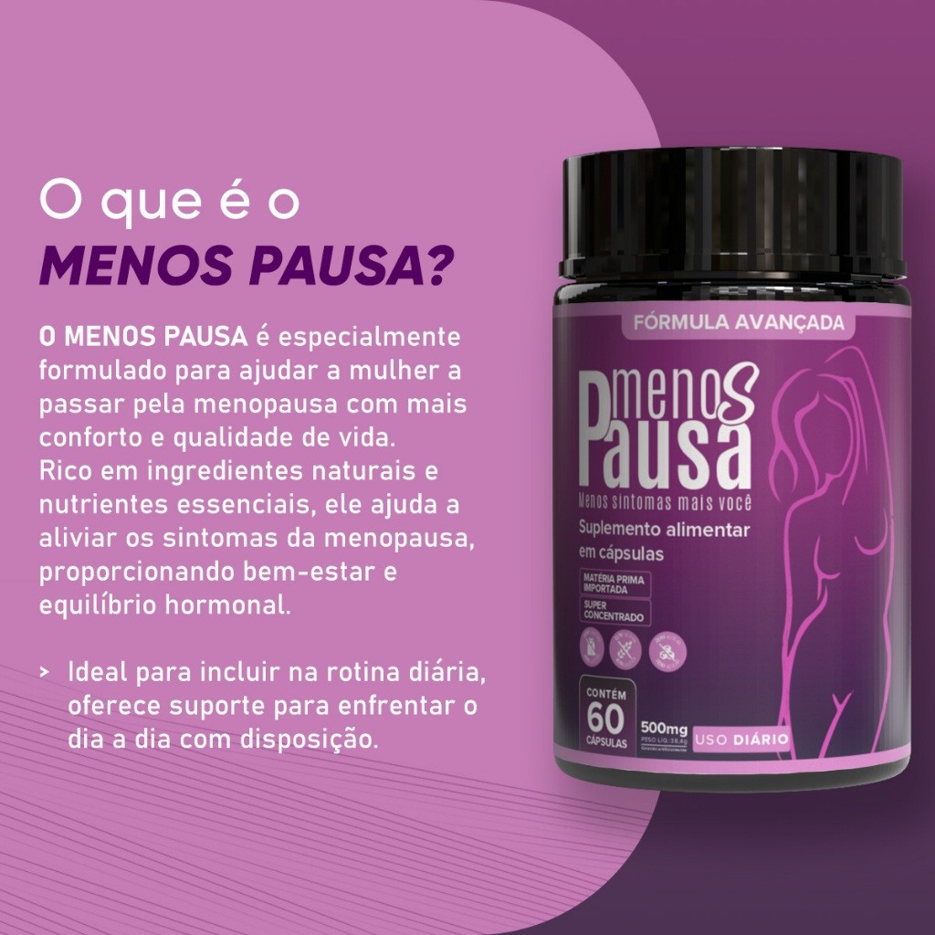 SUPLEMENTO NATURAL | 60 CÁPSULAS 🔥 💊 MODO DE USO 📍 Ingerir 2 cápsulas ao dia 📦 Frasco com 60 cápsulas (30 doses = 1 mês) ✨ MENOS PAUSA É MAIS VOCÊ!