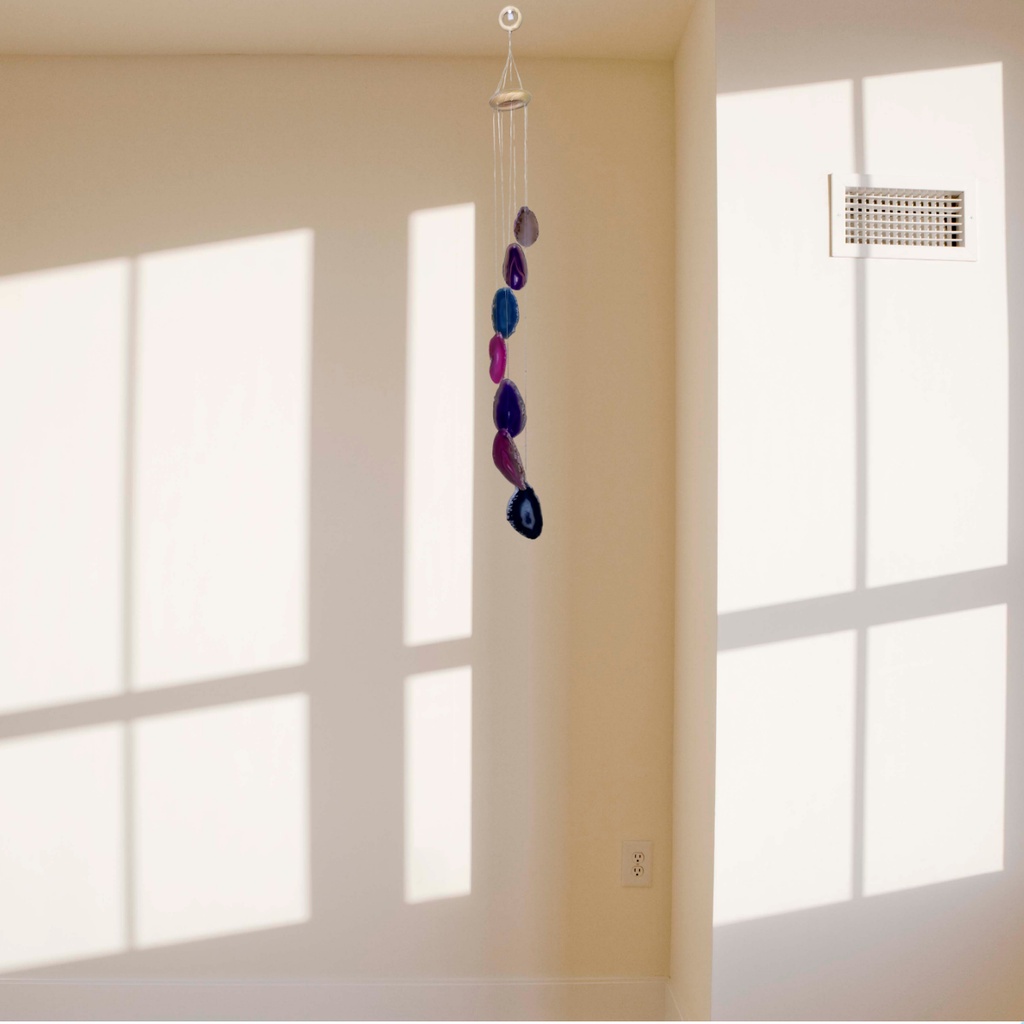 Mensageiro Dos Ventos De Ágata Mobile Sino dos Ventos 7 Pedras Coloridas Decoração