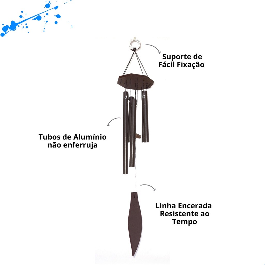 A Missão da Stillo Decor&Home é oferecer a melhor experiência de compra aos nossos clientes, zelando sempre pela qualidade no atendimento. Aqui você encontra diversos produtos decorativos, colecionáveis e esotéricos. Tire suas dúvidas com a nossa equipe de Atendimento. Características: Comprimento Total: PP - 40 cm. Comprimento Total: P - 50 cm Comprimento Total: M - 60 cm Comprimento Total: Mn°2 - 70 cm Todos modelos são confeccionados em aluminio e com linhas enceradas de alta resitência. 5 Tubos de Alumínio. Pingentes: Folha Parte Superior Central e Folha feitas em MDF Argolas em acrilico de fácil aplicação. >> O Mensageiro dos Ventos de Alumínio é um produto artesanal de alta qualidade que agrada qualquer pessoa. Pois possuimos diversos tamanhos e sons, desde mais suave até os mais agudos. Significado: O sino dos ventos traz em seu nome a cultura oriental e sua sabedoria milenar de transformar a energia com o auxílio de um dos mais importantes elementos da natureza: Ar. Dica de Uso: Deve ser colocado em locais onde haja passagem de vento para que possam movimentar-se espalhar as boas energias. Locais sugeridos: Varandas, sacadas, garagem, cantinho de descanso, locais cobertos e abertos. Não é aconselhável deixar exposto ao tempo por conter partes em MDF. Aguardamos sua compra!