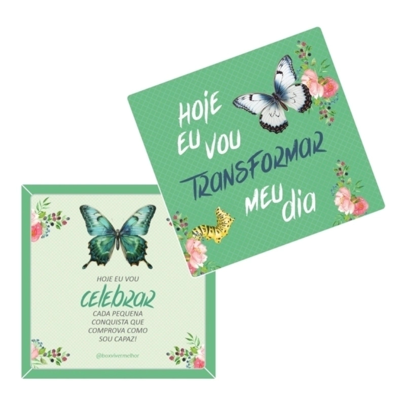 100 cartões com propósitos de ação para serem adicionados à sua rotina, gerando uma transformação positiva... Descubra o poder de pequenas ações diárias com nossos exclusivos boxes. Com 100 cartões inspiradores, cada um contendo um propósito de ação, você terá a oportunidade de adicionar práticas significativas à sua rotina e gerar uma transformação positiva em sua vida. Dimensão: Caixa 6,5cm x 6,5cm papel cartão 300g que vira expositor ao ser aberta. Cartinhas 6cm x 6cm papel couché 200g. Benefícios: Melhora do Bem-Estar: Incorporando hábitos saudáveis e produtivos, você sentirá uma melhoria no seu bem-estar físico e mental. Inspiração Diária: Um novo propósito a cada dia para manter sua rotina interessante e inspiradora. Reflexão e Crescimento Pessoal: Momentos de reflexão que incentivam o autoconhecimento e o desenvolvimento pessoal. Tire todas as suas dúvidas antes de concluir a compra. Iremos responder o mais breve possível. Todos os produtos anunciados são a pronta entrega. •Embalagem de Envio: Caixa de papelão ondulado, plástico bolha, conforme necessidade do produto. Consulte nossos preços e condições para vendas. Ideal para o seu ambiente. Ótima resistência e durabilidade Respostas das dúvidas mais frequentes na ordem: R1: Já realizamos milhares de entregas em todo o Brasil, somos especialistas no que fazemos. R2: Assim que seu pedido for despachado, esta plataforma envia para você o código de rastreamento. R3: Enviamos o produto 100% inspecionado e conferido em nosso checkout e são embalados em embalagem de papelão e plástico bolha. R4: O tempo de entrega irá depender totalmente do seu CEP, todos os nossos produtos saem de São Paulo Capital. R5: Iremos despachar o seu produto o mais rápido possível, assim que for confirmado pela plataforma, enviamos em até 24h. R6: Nós queremos a sua satisfação, qualquer problema iremos te auxiliar em nossos canais de comunicações.