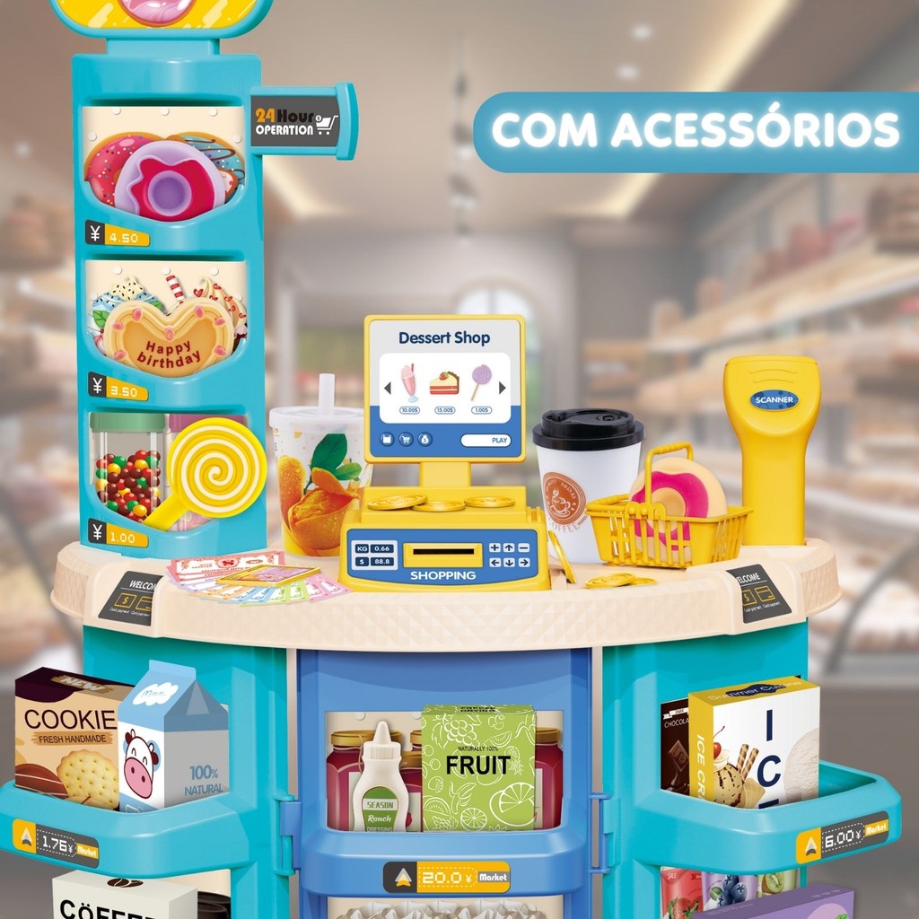 Mercadinho Confeitaria Infantil Doceria Brinquedo Faz de Conta 62 Peças