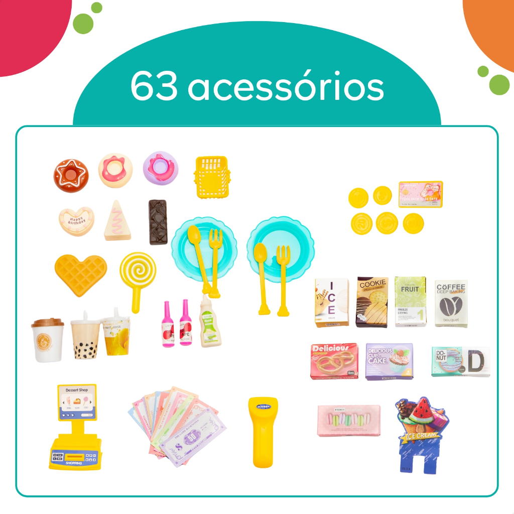 Mercadinho Confeitaria Infantil Doceria Faz de Conta 62 Peças