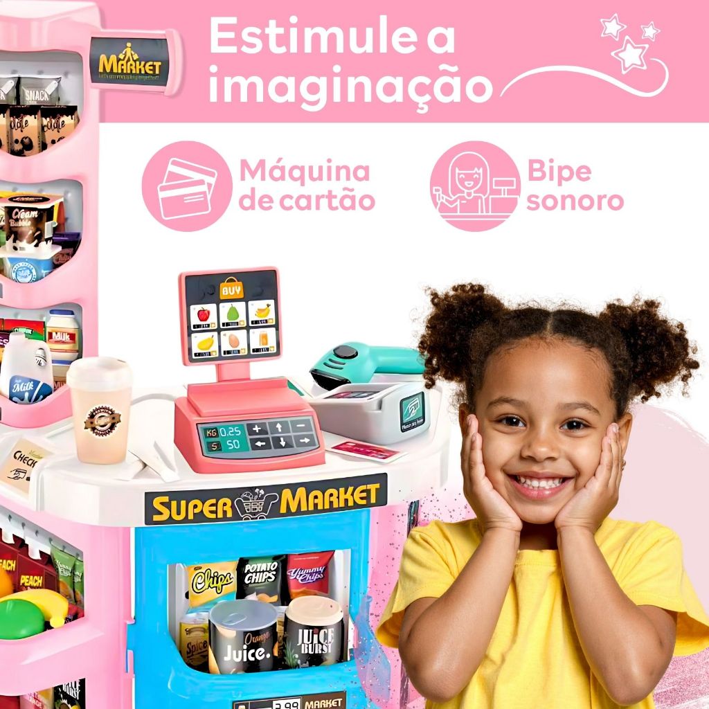 Mercadinho Infantil Faz de Conta com Caixa Registradora