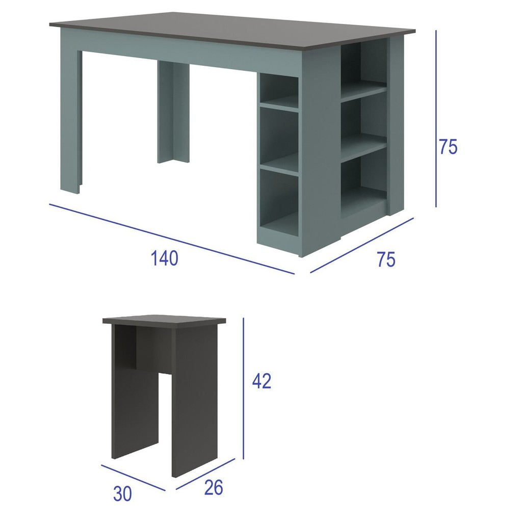 Mesa 140 Cm com 4 Banquetas e Prateleira Esmeralda