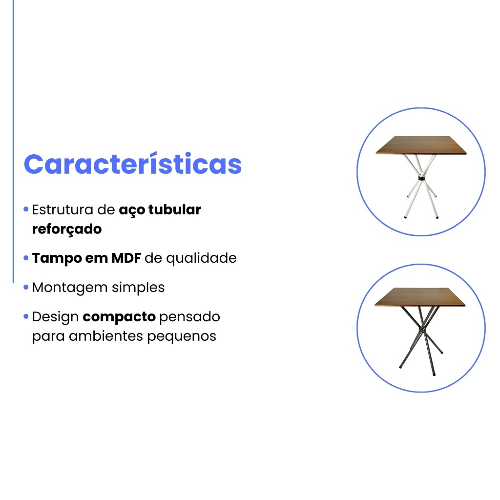 Mesa 4 Lugares Quadrada Pequena Compacta Tampo MDF e Base Aço Cozinha Sala Jantar Apartamento