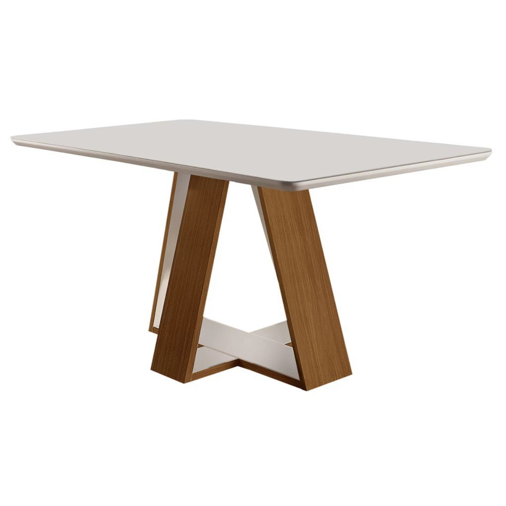 Mesa 4 lugares Tampo com Vidro/Laca Grécia Castanho Cinamomo/Off White