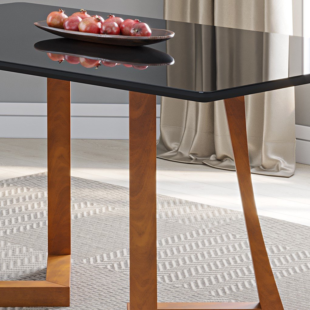 Mesa 6 Lugares Madeira Maciça com Vidro Canto Arredondado 160x90cm Jantar Anna Preto/Ambar