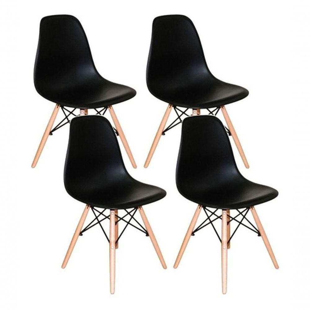 Mesa 90cm 4 Cadeiras Eames Eiffel Pés De Madeira Preta