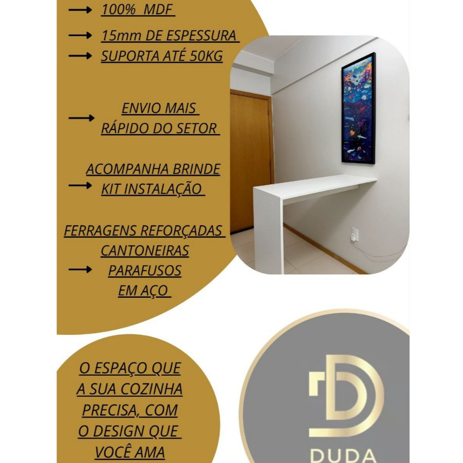 Mesa Bancada de Cozinha em MDF – 1 Metro ✨🛠️ Transforme sua cozinha com praticidade e elegância! Nossa Mesa Bancada de Cozinha em MDF é perfeita para quem busca um espaço funcional e estiloso. Ideal para cozinhas compactas ou como apoio extra no seu ambiente! Nossos produtos são fabricados em MDF 15mm com fita PVC por toda lateral do produto, garantindo qualidade e durabilidade da peça. Ainda conta com o acabamento feito à mão, para garantir a total qualidade do produto. 📏 Medidas: ✔ Comprimento: 100 cm (1 metro ) ✔ Largura: 50 cm ✔ Altura: 100 cm ( 1 metro ) FABRICAMOS TAMBÉM SOB MEDIDA Vai lá se mexe, pega a trena, meça seu espaço e utensílios, planeje. ✅ Fabricada em MDF de alta qualidade ✅ Design moderno e versátil ✅ Fácil de montar e super resistente 🚚 Envio rápido para todo o Brasil! Garanta já a sua e renove seu espaço com estilo! 💛 Após a confirmação da compra enviamos o seu pedido em até 24 horas úteis (podendo ocorrer até no mesmo dia) Estamos no mercado de moveis planejados a mais de 20 anos, partindo agora para E-commerce, com estrutura toda automatizada e profissionais capacitados. Estaremos a disposição para tirar qualquer dúvida. Aguardamos seu pedido