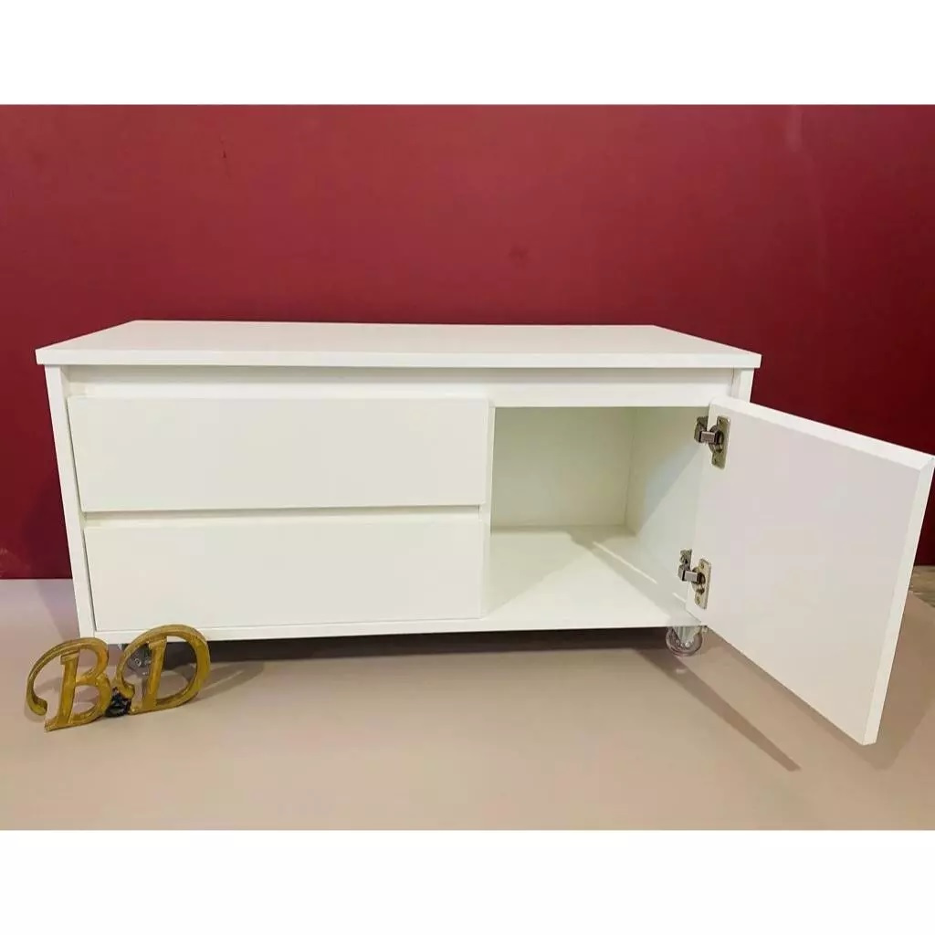 Mesa com 2 gavetas e 1 porta com rodinhas 80x45x40