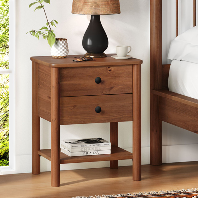 Mesa de Cabeceira 2 gavetas Madeira Apoana Castanho Corrediças Telescópicas