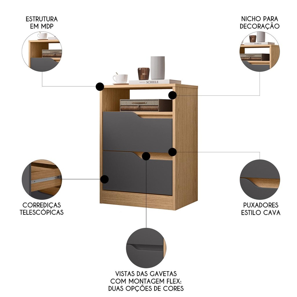 Mesa de Cabeceira 2 Gavetas Sole Flex Freijó/Titanium - Albatroz