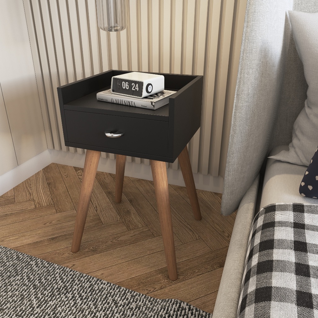 Mesa de Cabeceira Apoio Lateral Quarto Cama Com Pés Palito Retro e Gaveta Várias Cores MVD Móveis