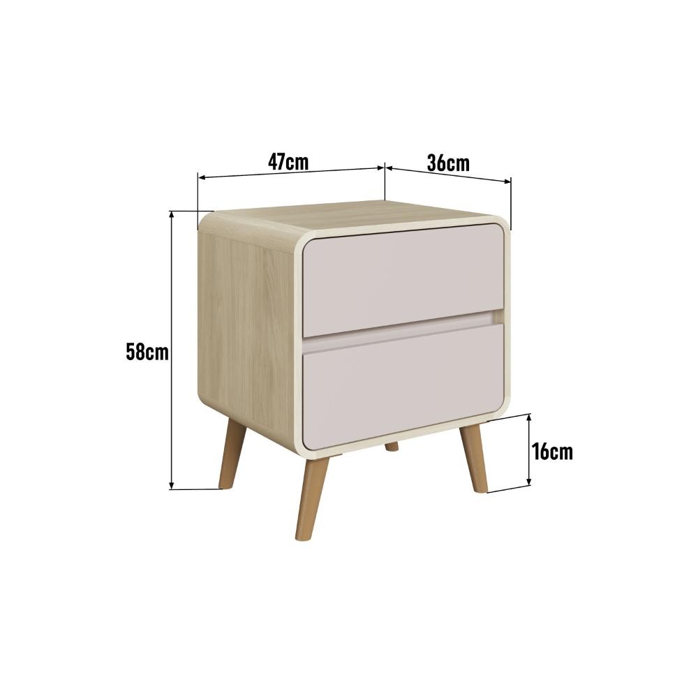 Mesa de Cabeceira com 2 Gavetas Carvalho Araguaia/Bege Dunas – Completa Móveis