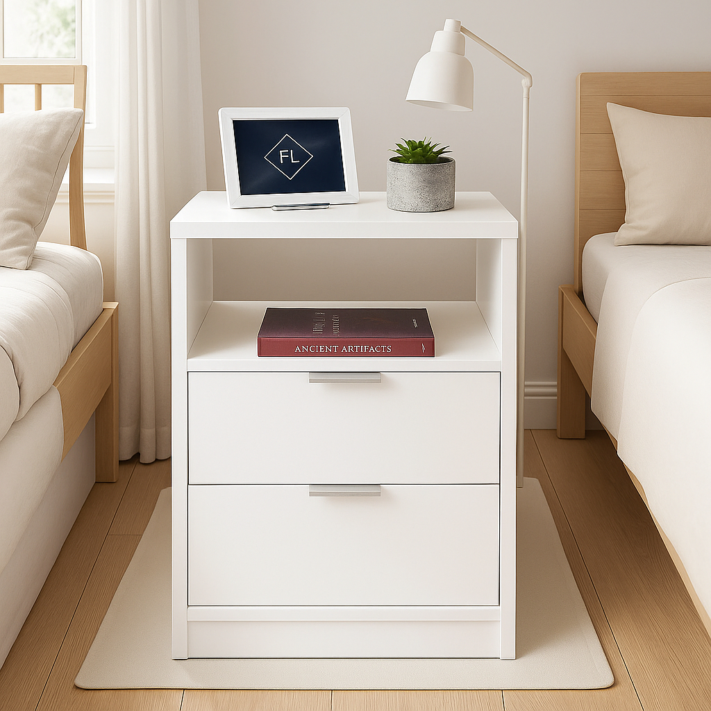 Mesa de Cabeceira Criado Branco 2 Gavetas e 1 Nicho em MDF Lado da Cama Quarto Estilo Cômoda