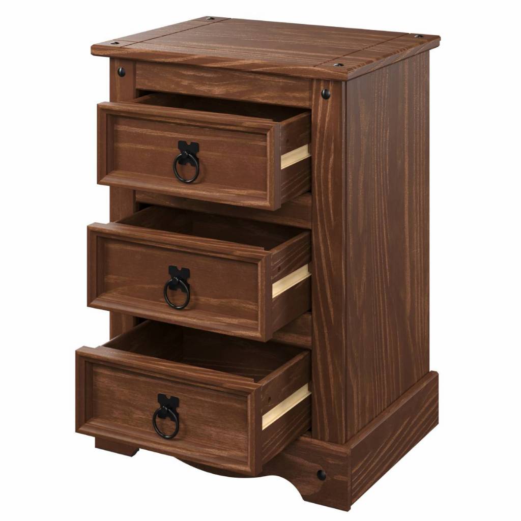 Mesa de Cabeceira de Madeira com 3 Gavetas Mahogany - COM501