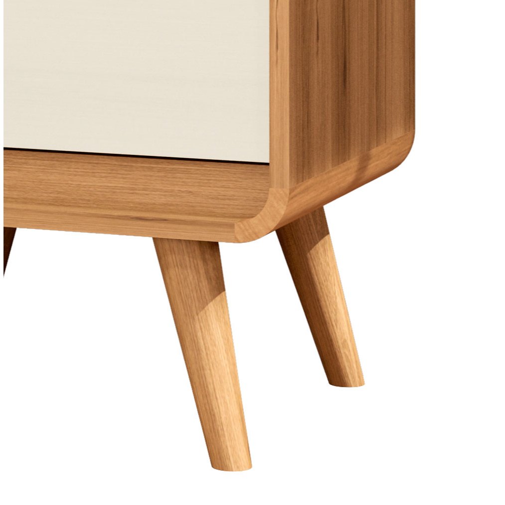 Proporcionando maior comodidade para seu dormitório e muito charme a Mesa de Cabeceira Retrô Compacta 1 Gaveta 1 Nicho Channel - Potenza Móveis, irá promover aquele apoio ao lado da cama, com uma gaveta e nicho permite a organização do espaço e seu amplo tampo é ideal para posicionar luminárias. Além de seus pés em madeira maciça no estilo retrô e suas laterais com curvatura C, que dão um chame a mais para a peça. Dimensões do Produto Montado: Altura: 57 cm Largura: 45 cm Profundidade: 35 cm Especificações: - Gaveta com corrediças telescópicas; - Laterais com curvatura C; - Produto MDF e MDP; - Pés em madeira maciça; - Este produto possui três cores, sendo: nature, nature com off white e nature com preto.