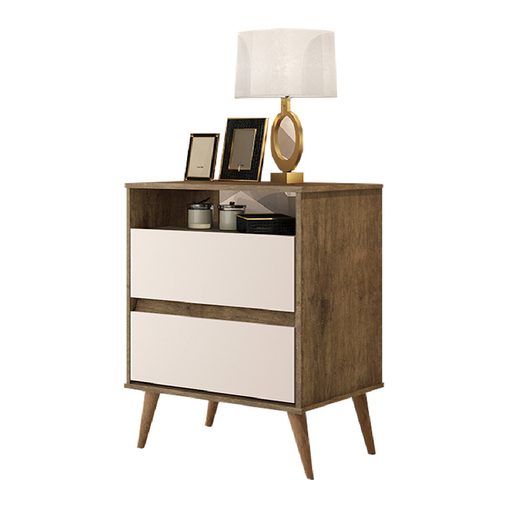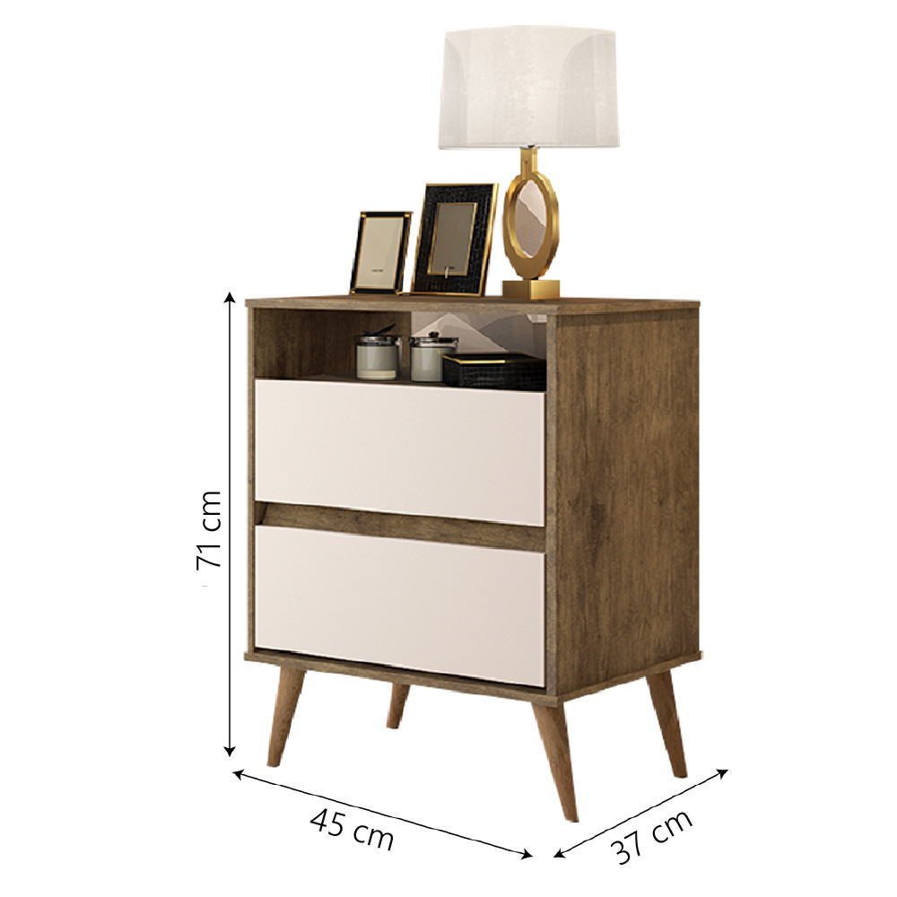 Mesa De Cabeceira Lótus Retrô 1 Nicho 2 Gavetas Pés Palito Jequitibá/Off White J&A