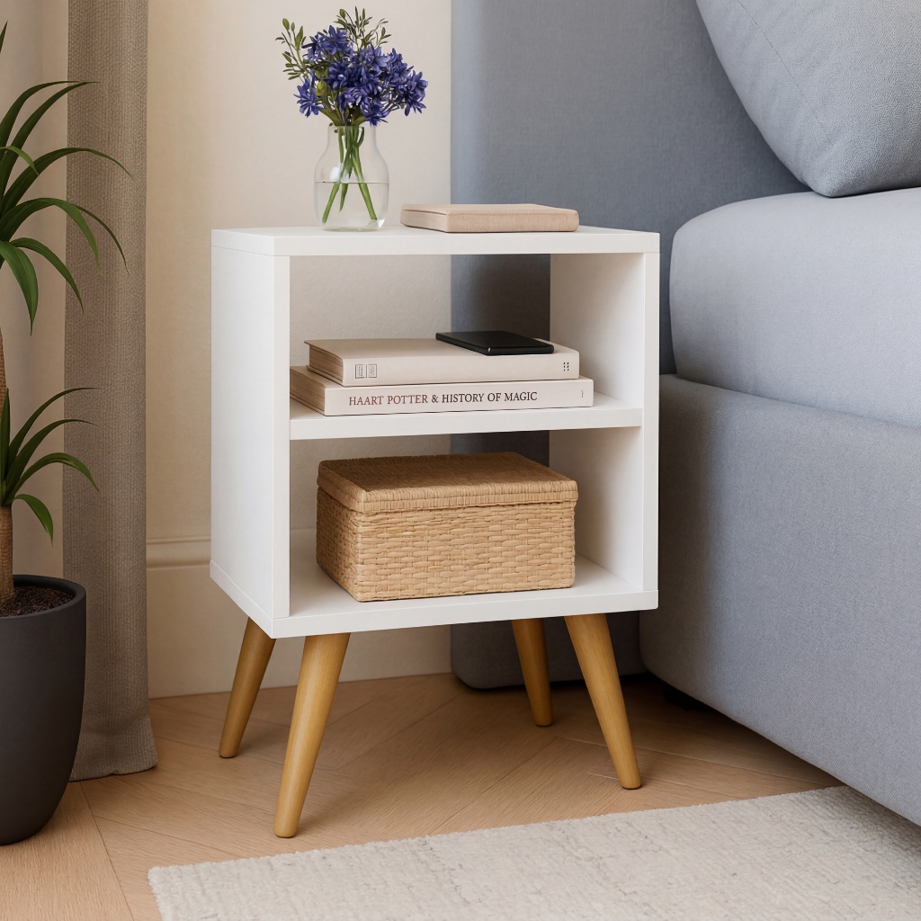 Mesa de Cabeceira Retrô Branca com Pés Palito O detalhe que falta para seu quarto ficar mais bonito, organizado e com cara de decoração premium. Com design retrô moderno, acabamento clean e nichos funcionais, ela une beleza e praticidade na medida certa. Perfeita para deixar celular, livros, luminária e objetos sempre à mão, sem abrir mão do estilo. Por que escolher essa mesa? • Visual elegante que valoriza o ambiente • Pés palito super charmosos • Nichos que ajudam na organização • Combina com quartos modernos, neutros e minimalistas • Compacta, bonita e funcional Dimensões: • Altura: 45 cm • Largura: 30 cm • Profundidade: 25 cm É aquele móvel que, sozinho, já muda a sensação do quarto. Se você quer um ambiente mais arrumado, sofisticado e acolhedor, essa é a escolha certa. Garanta a sua antes que acabe.