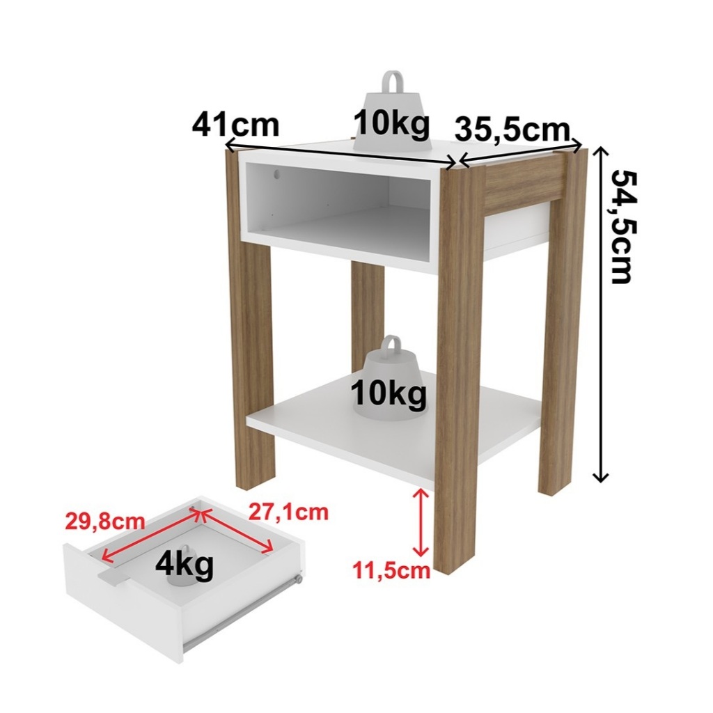 Mesa de Cabeceira Multimóveis CR35003 Amendoa/Branca