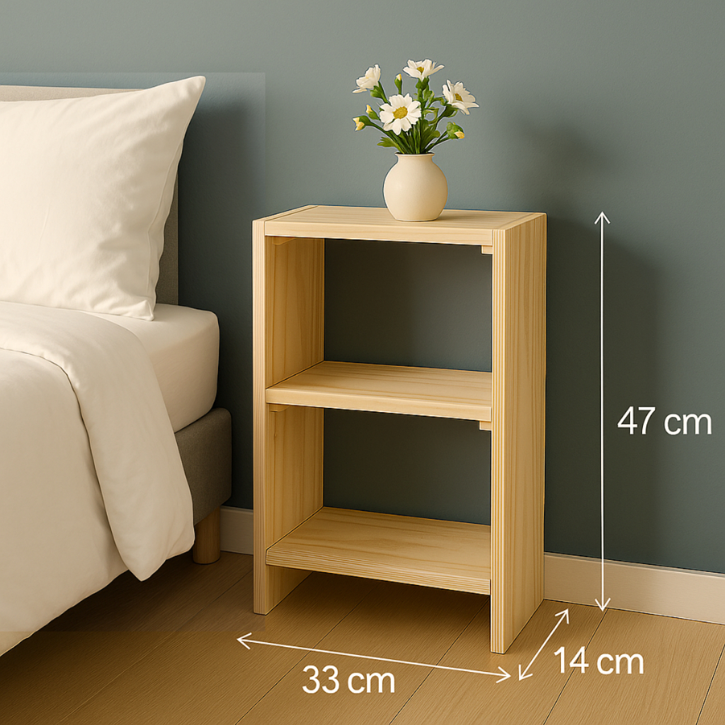 Por que escolher a ACB? Aqui estão três motivos que fazem da nossa empresa a melhor opção para você: 1. Precisão e Qualidade: Nossos produtos são fabricados com maquinário moderno e preciso, garantindo acabamento impecável e alto padrão de durabilidade. Cada peça passa por um rigoroso controle de qualidade, assegurando que você receba um item resistente, funcional e visualmente bonito. 2. Despacho Rápido: Sabemos que agilidade faz a diferença. Por isso, nos comprometemos a despachar seu pedido em até 24 horas após a confirmação da compra. Assim, você recebe seu produto com rapidez e segurança, pronto para o uso. 3. Atendimento Personalizado: Nosso relacionamento com o cliente vai além da venda. Estamos sempre prontos para esclarecer dúvidas e oferecer suporte no que for necessário. A sua satisfação é nossa maior prioridade. Informações do Produto – Mesa de Cabeceira com Nicho Produto enviado montado: Receba sua mesa de cabeceira pronta para uso, sem complicações. Entrega para todo o Brasil: Enviamos via Shopee Express, garantindo segurança e eficiência na entrega. Dimensões da Mesa de Cabeceira: Comprimento: 33 cm Profundidade: 14 cm Altura: 47 cm Espessura da madeira: 15 mm Capacidade de carga: até 10 kg Características do Material: Fabricada em madeira Pinus de 15 mm, selecionada pela sua alta resistência e excelente acabamento. O material é tratado e preparado para garantir durabilidade e elegância ao seu ambiente.