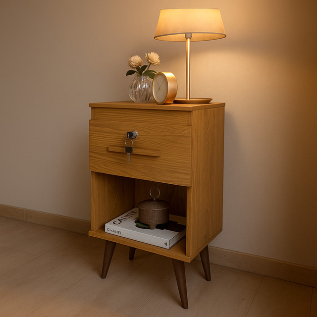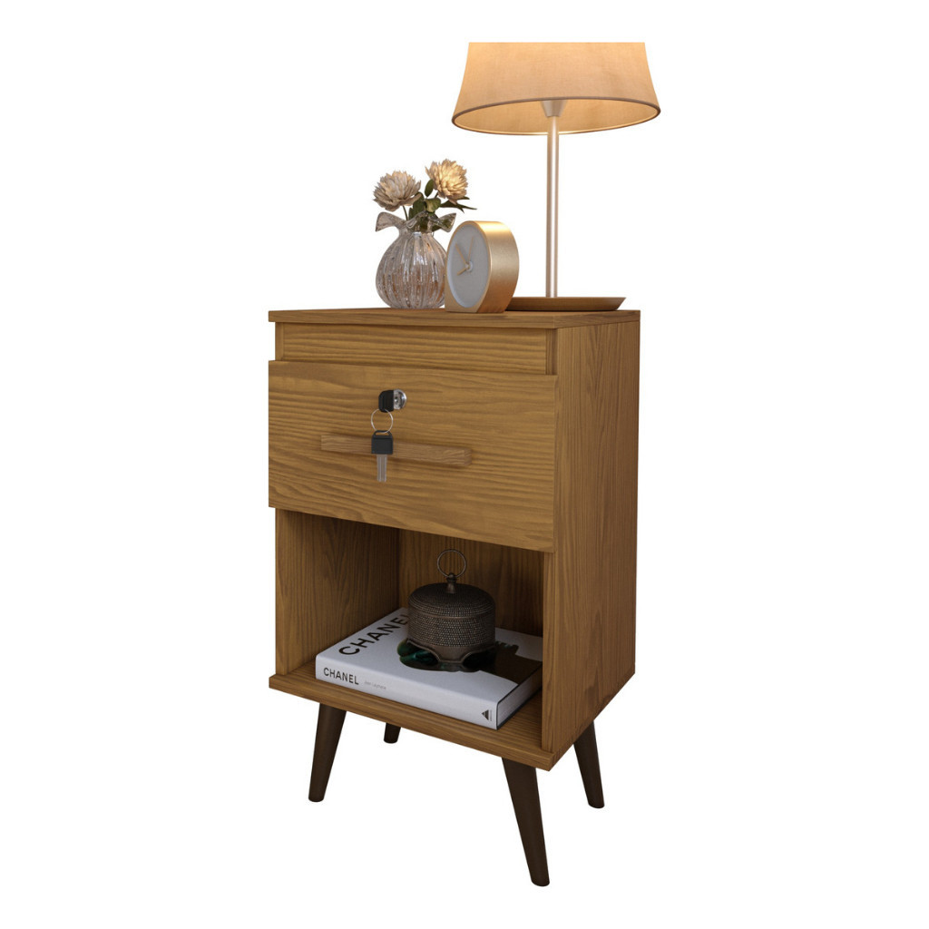 Mesa De Cabeceira para Quarto 1 Gaveta com Chave e Nicho Retrô - Cor Canelato