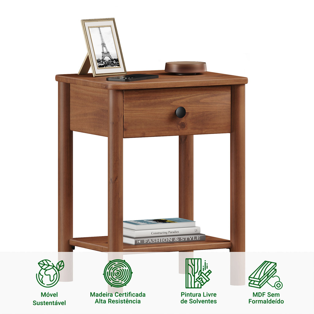 Mesa de Cabeceira Quarto Madeira 1 Gaveta Moderna Apoana Castanho