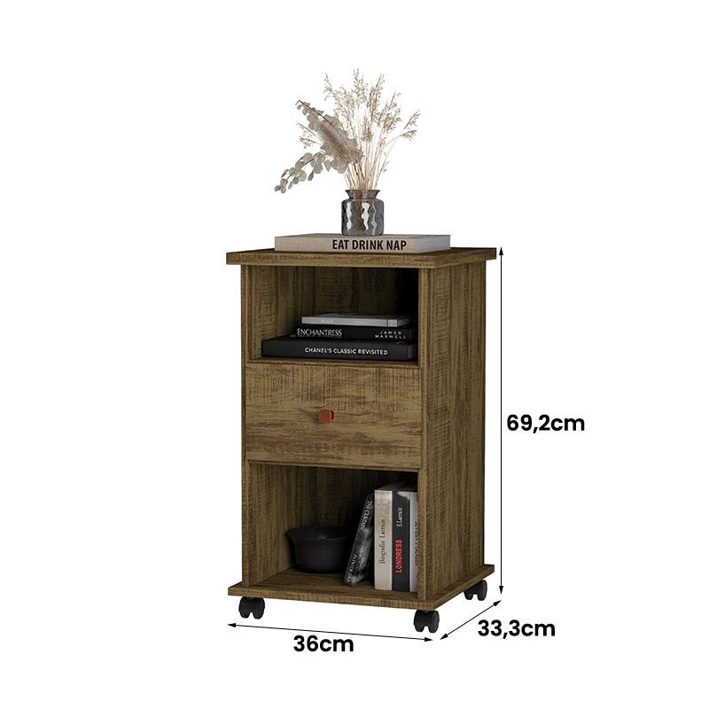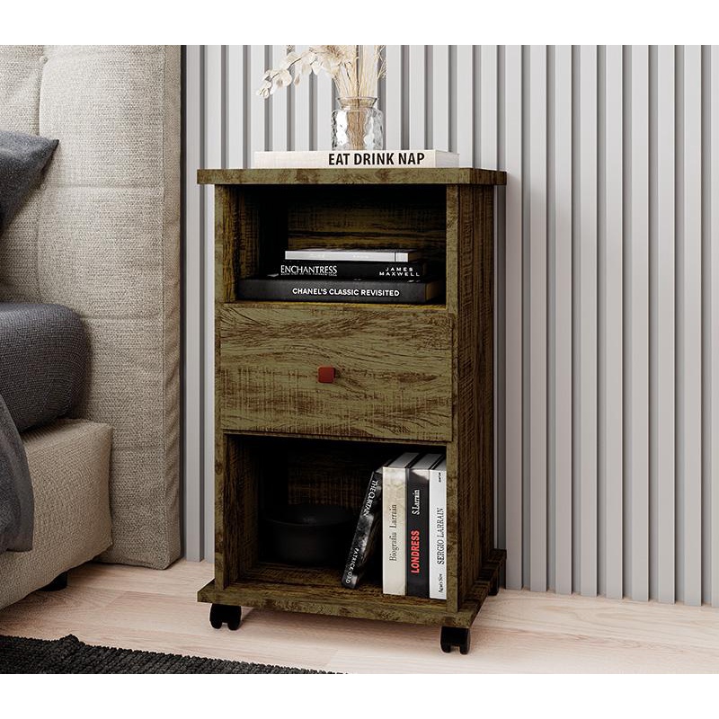 Mesa de Cabeceira Quarto Otto com 1 Gaveta e Rodízios
