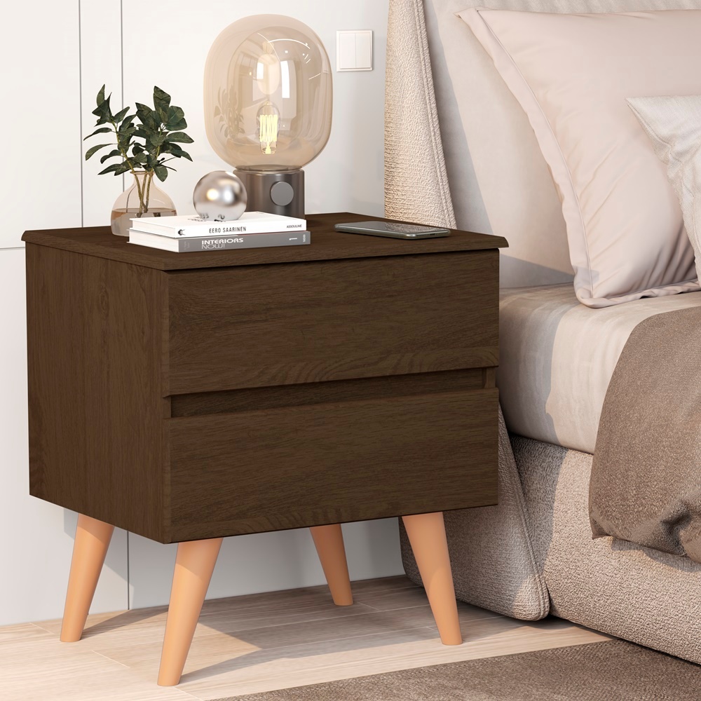 Mesa De Cabeceira Roma Criado Para Quarto Pés Palito Retro 2 Gavetas - Várias Cores