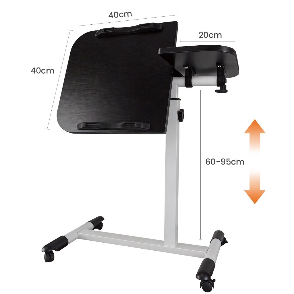 Mesa de Canto Ajustável com Rodas Trava Mesa para Notebook Multifuncional 3 Cores-Noz Líquida/Branca/Preto