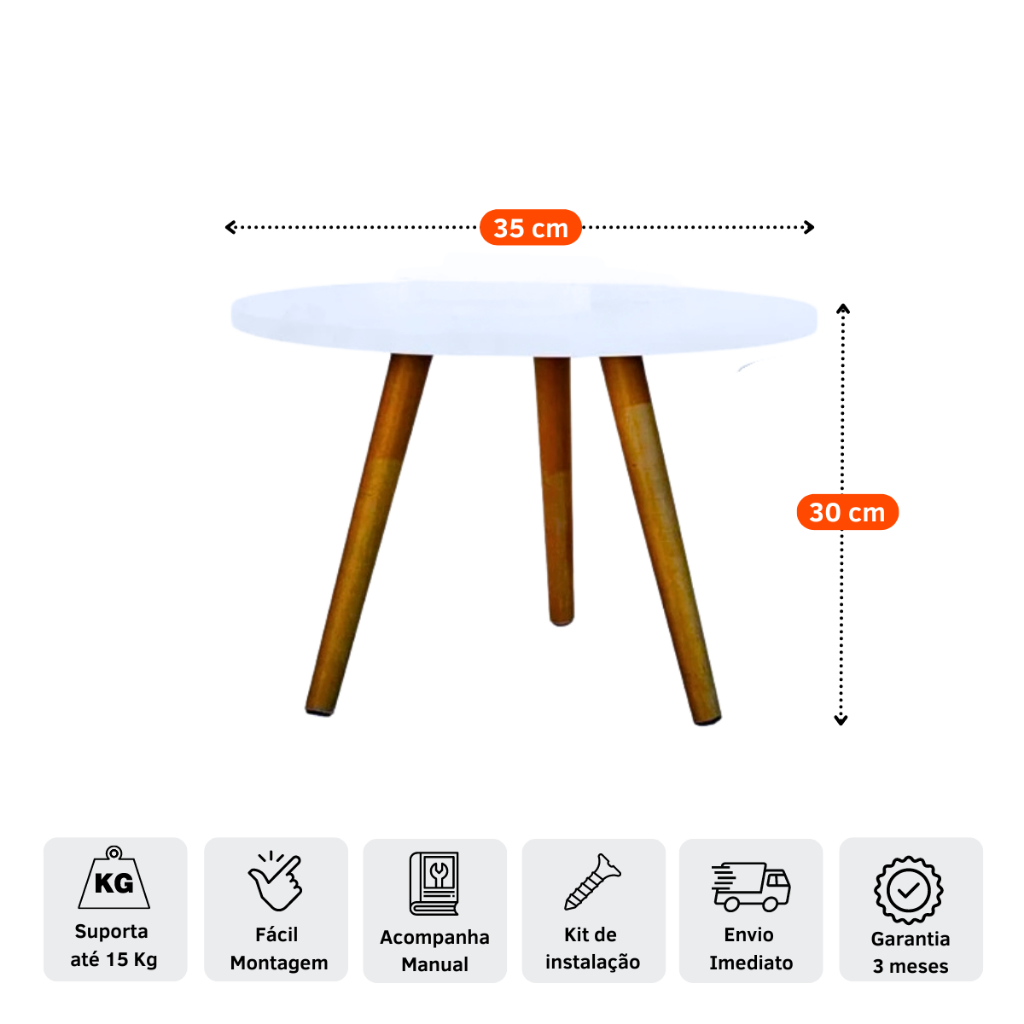 Transforme seu quarto/sala em um ambiente organizado e elegante com a Mesa Retro com Pés Palito em Madeira Maciça! - ENVIO IMEDIATO! - Fácil Montagem: Acompanha kit de instalação completo e manual para montagem! - Ideal para ser utilizada como mesa de centro, mesa de cabeceira ou mesa de canto - Acompanha Nota Fiscal DIMENSÕES DO PRODUTO: Tampo: 35 cm Altura: 30 cm CORES DISPONIVEIS: Branco ou Preto CARACTERÍSTICAS: - Contém 1 mesa de apoio - Pés em madeira maciça envernizada - Mesmo material de móveis planejados - Suporta até 15 Kg - Produto será entregue DESMONTADO - Garantia do vendedor: 90 dias. ATENDIMENTO 24 HORAS! Qualquer dúvida, entre em contato via chat e responderemos rapidamente! PALAVRAS CHAVE Sala Casa Quarto Criado Apoio Cama Pé Palito Mesa de cabeceira Mesinha de Canto