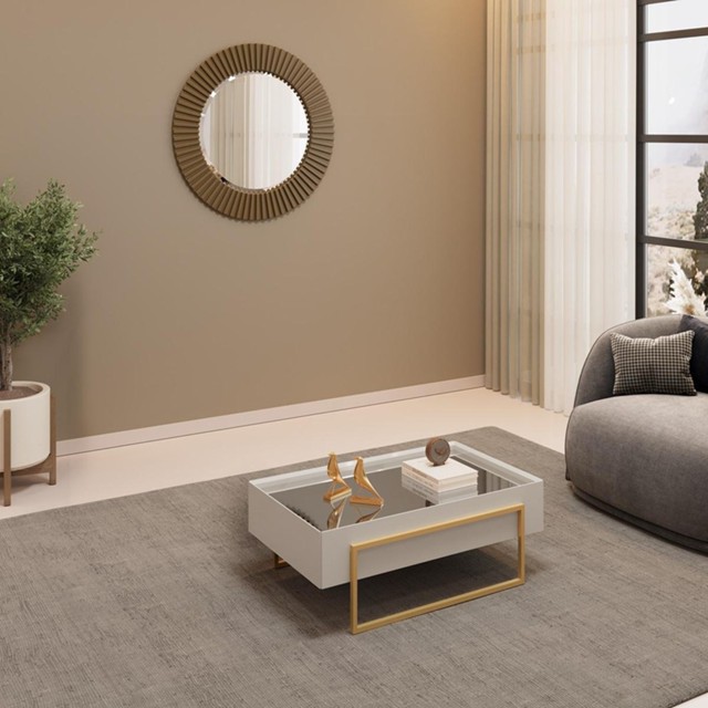 Mesa de Centro com Tampo Espelhado e Pés Dourados DJ Móveis Kika Bali