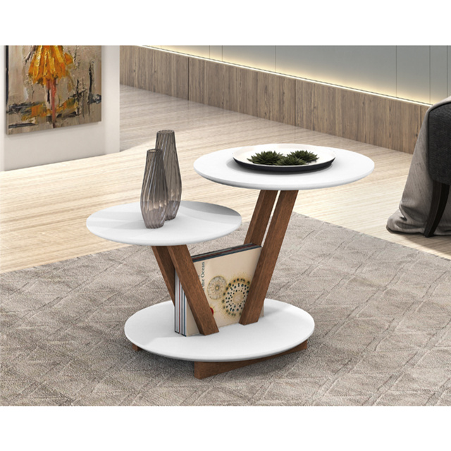 Mesa De Centro Contemporânea Moderna Dois Andares Redonda