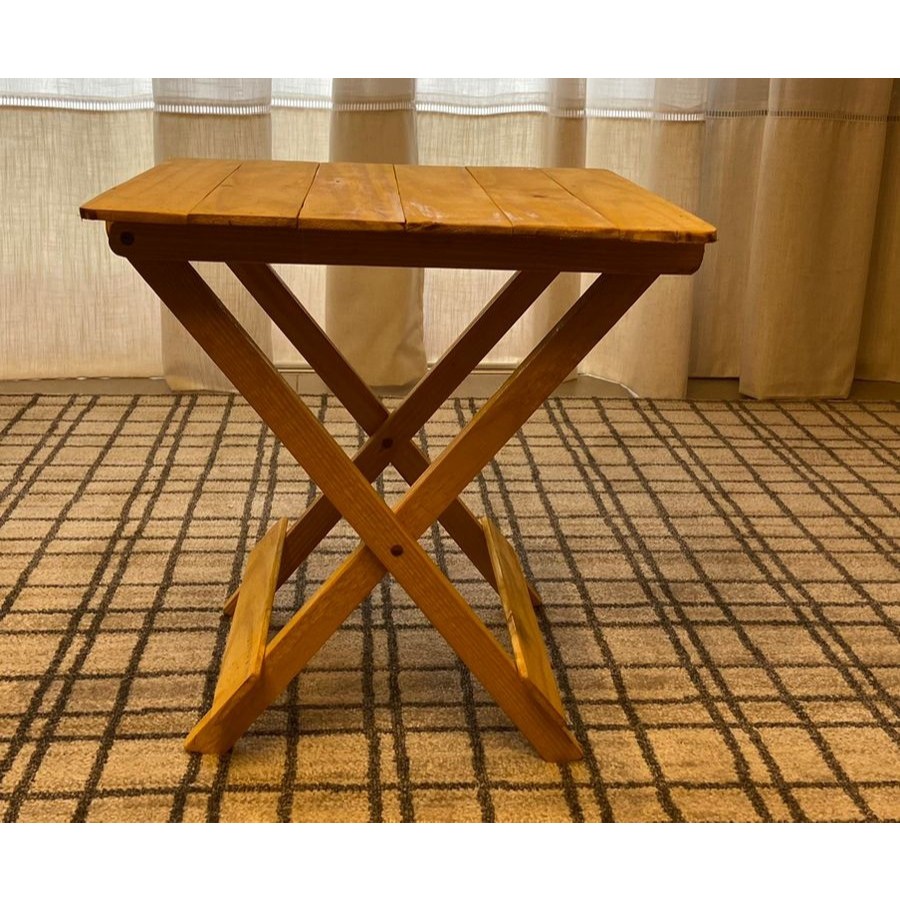 Apresentamos a nossa exclusiva mesinha de madeira dobrável, especialmente projetada para acampamentos, pesca e atividades ao ar livre, assim oferecendo uma solução prática e versátil para apoiar objetos sendo pesados ou leves acomodando crianças e adultos. Feita com madeira resistente e durável, essa mesinha é leve e fácil de transportar, tornando-a perfeita para aventuras, piqueniques e outras atividades ao ar livre. Sua estrutura dobrável permite montar e desmontar a mesa com rapidez e facilidade, economizando espaço na bagagem e facilitando o transporte. Com um design seguro e estável, essa mesa oferece um suporte confiável para as crianças. Ela possui pernas dobráveis que se travam no lugar, garantindo estabilidade durante o uso. Assim, as crianças podem desfrutar de suas refeições, brincadeiras e atividades com segurança e conforto. A mesa de madeira dobrável é ajustada para a altura das crianças, proporcionando um espaço adequado para elas se sentarem e interagirem. Ela é ideal para jogos de tabuleiro, desenho, lanches entre outras atividades. Além da sua funcionalidade, essa mesa possui um visual encantador que combina perfeitamente com a atmosfera natural do acampamento. Com seu acabamento em madeira, ela adiciona um toque rústico e aconchegante ao ambiente, tornando cada momento ao ar livre ainda mais especial. Invista na praticidade e na diversão das crianças com a nossa mesa. Proporcione a elas um espaço seguro e confortável para aproveitar ao máximo as atividades ao ar livre. OBS: Peças totalmente envernizadas. MEDIDAS/PESO UNIDADE: ALTURA: 48 cm LARGURA: 46 cm COMPRIMENTO: 46 cm PESO: 3,000 kg (MADEIRAS USADAS: ANGELIM, TAUARI, PINUS, ANGICO... Madeiras reflorestadas, assim tornando cada peça unica e exclusiva).
