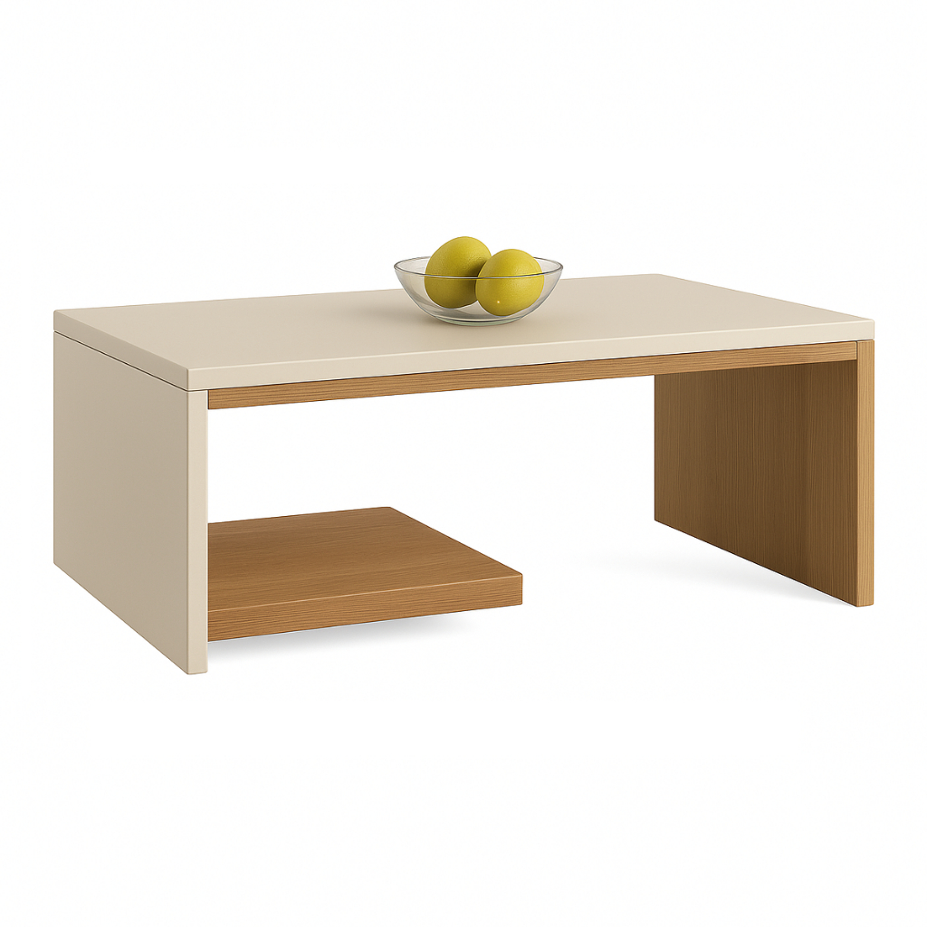 Mesa de Centro Kiara com Revisteiro Prateleira Decorativa Moderna Para Sala de Estar