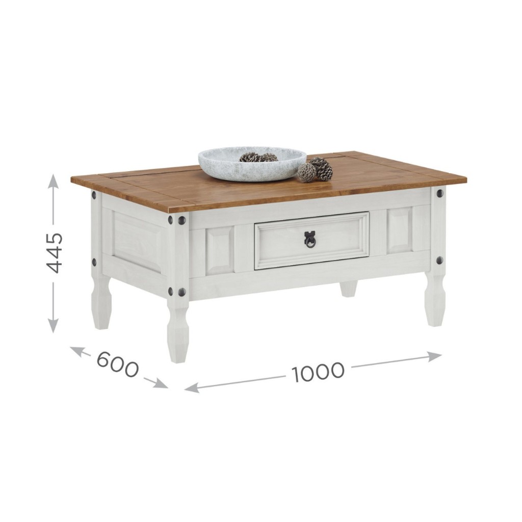 Mesa de Centro Retangular com 1 Gaveta em Madeira Maciça Branco/Nogal