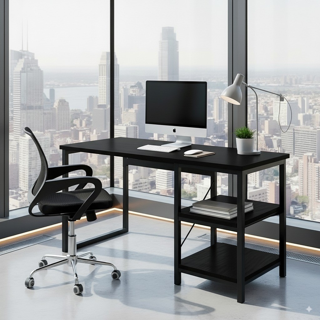 Pronta Entrega – Envio Imediato – Enviamos para Todo o Brasil – Preço Promocional ----Descrição---- A Mesa Escrivaninha com Nichos une estilo industrial, organização e durabilidade em um só móvel. O tampo amplo de 120 cm garante conforto para trabalhar/estudar, enquanto os 2 nichos laterais mantêm tudo no lugar — livros, eletrônicos, documentos e acessórios — deixando o ambiente limpo e produtivo. ----Benefícios (o que ela entrega no dia a dia)---- Design industrial moderno: estrutura metálica preta com pintura eletrostática e tampo em MDF com textura madeira (opção Nature) ou Preto. Espaço de sobra: área útil para notebook/monitor, caderno, luminária e periféricos sem aperto. Organização inteligente: 2 nichos laterais de fácil acesso para itens que você usa o tempo todo. Resistência real: tampo em MDF 15 mm + estrutura metálica reforçada = estabilidade e longa vida útil. Versátil: perfeita para home office, quarto de estudos ou escritório compacto. Limpeza prática: pano levemente úmido e sabão neutro preservam o acabamento. ----Especificações Técnicas---- Tampo: MDF 15 mm Estrutura/Pés: metal com pintura eletrostática preta Nichos: 2 prateleiras laterais em MDF 15 mm Medidas (L x A x P): 120 x 75 x 45 cm Cores disponíveis: Nature (amadeirado) e Preto ----Conteúdo da Embalagem---- 1 Mesa Escrivaninha com Nichos (vai desmontada) Kit de montagem Manual ilustrado Dica: a montagem é simples; para acabamento impecável, você pode contratar um montador profissional. ----Garantia---- 90 dias contra defeitos de fabricação. Sugestões de Uso Monte um setup minimalista com monitor + notebook e use os nichos para roteador, livros e organizadores. Ideal para quartos pequenos e home office que exigem aproveitamento vertical sem perder área de trabalho. ----Observações Importantes---- Imagens meramente ilustrativas. Itens decorativos, cadeiras e eletrônicos não acompanham o produto. Não utilizar produtos abrasivos na limpeza.