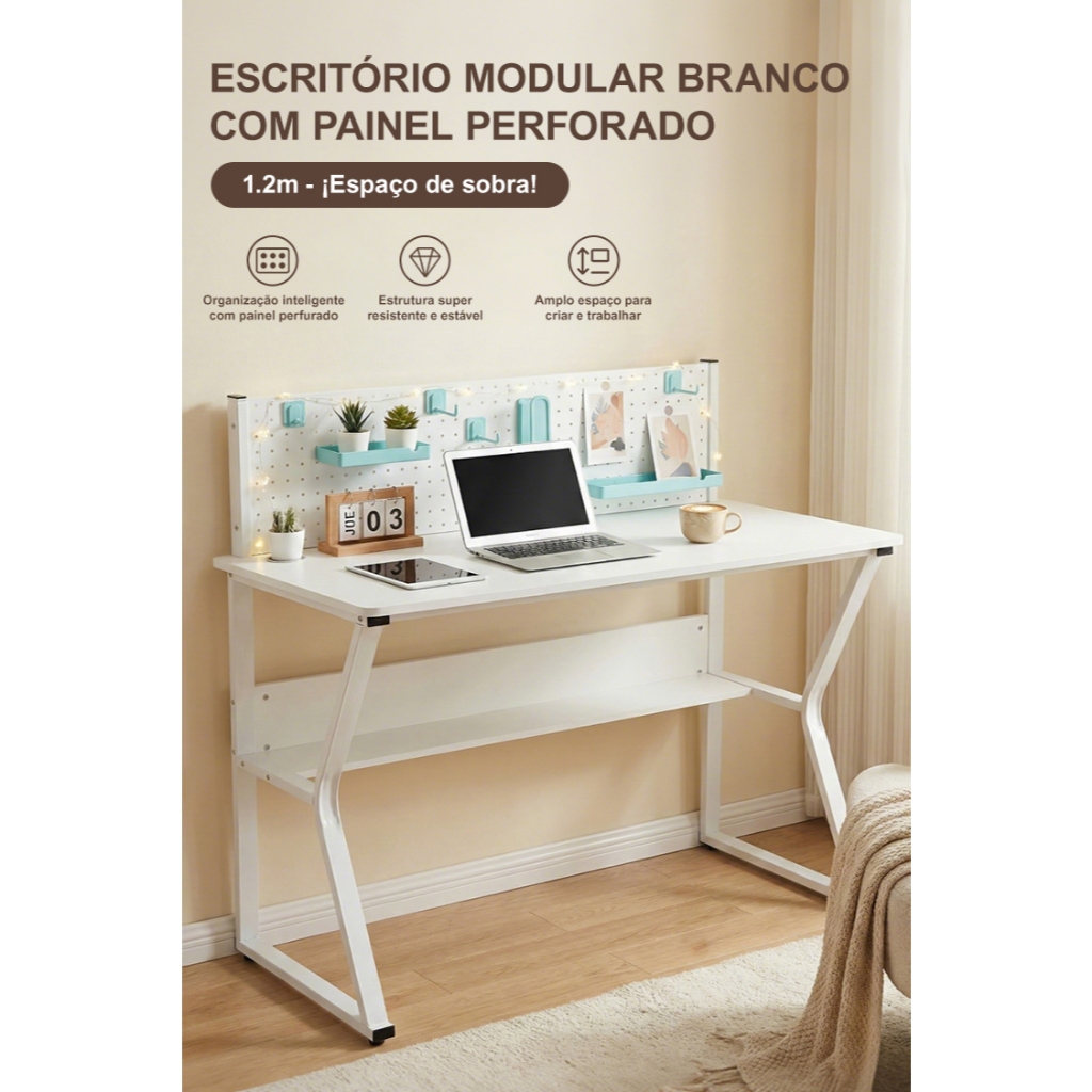 Mesa de Computador Escrivaninha com Painel Pegboard Organizador e Prateleiras para Estudo e Home Office MECOLOUR