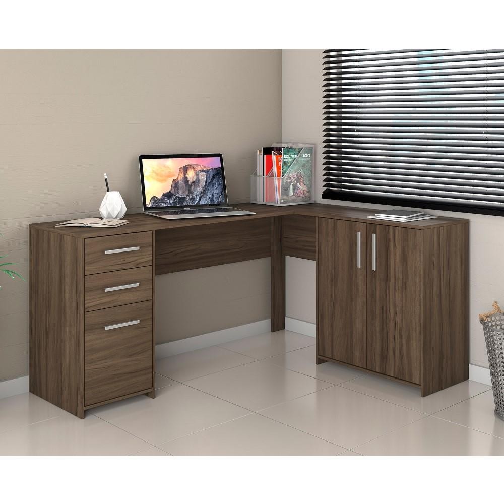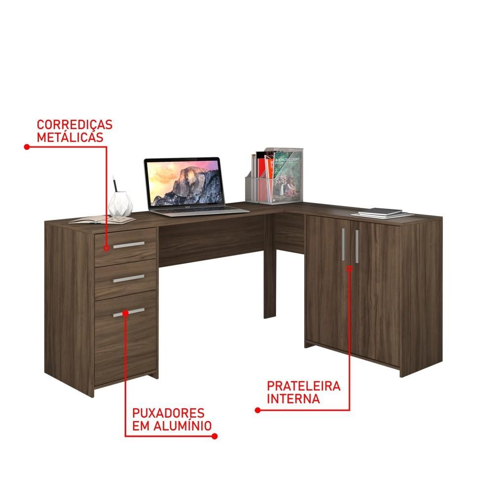 Mesa de Escritório Escrivaninha Em L Home Office Para Computador Quarto 3 Portas Marrom Escuro