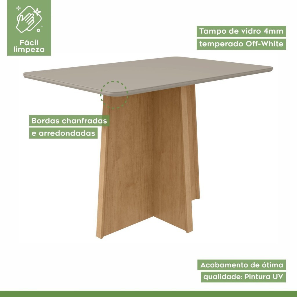 Mesa de Jantar 120x80cm Tampo MDF/Vidro Celebrare Amêndoa Clean/Off White