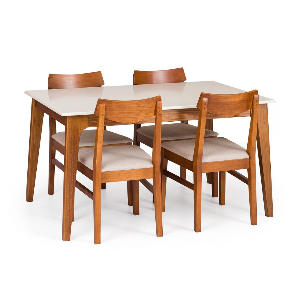 Mesa de Jantar 4 Lugares 138,5x93,4cm Club Branco Pérola/Garapa