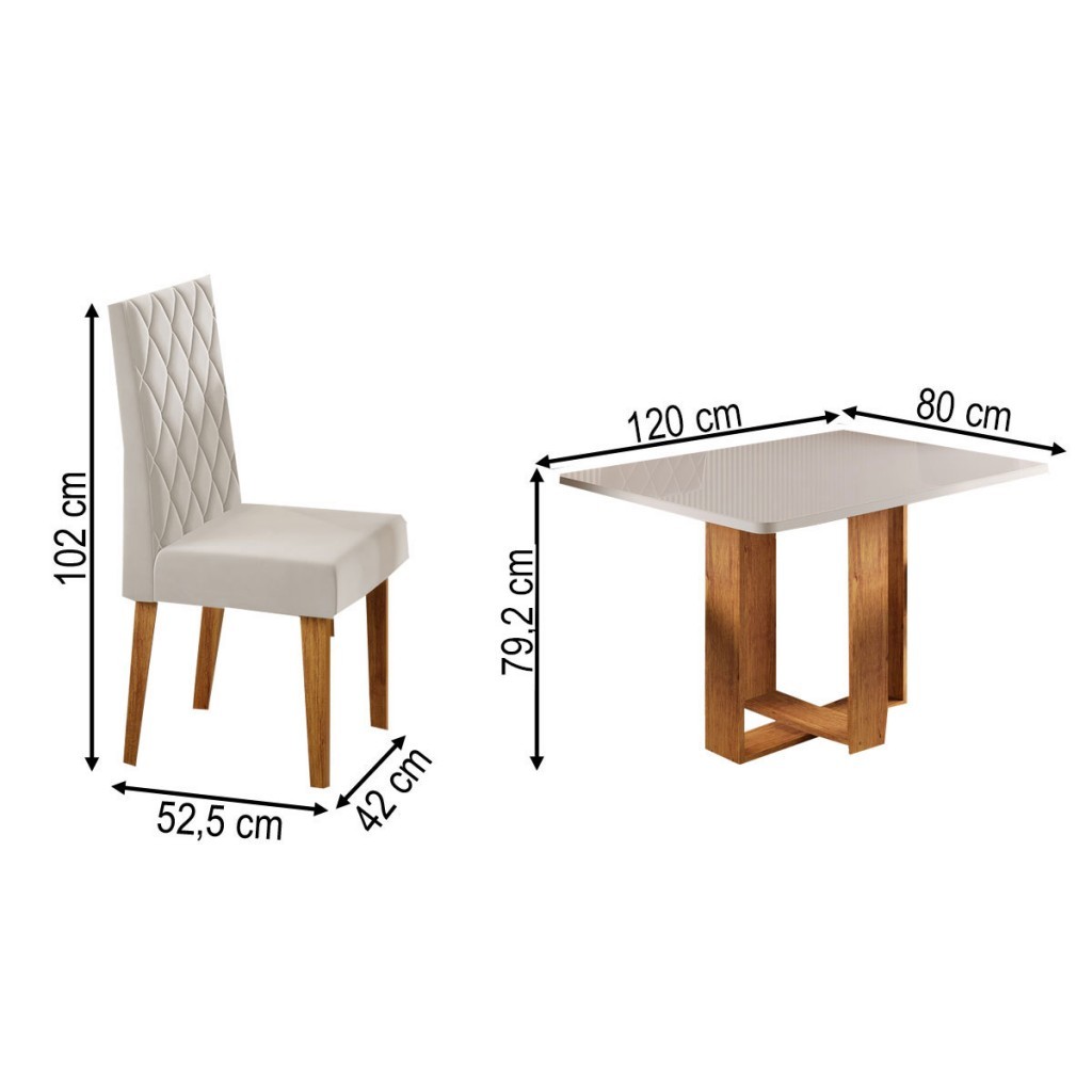 Dimensões: - Altura: 79,20 cm - Largura: 120,00 cm - Profundidade: 80,00 cm - Peso: 59,920 kg Descrição: O(a) Mesa de Jantar 4 Lugares Afrodite com Vidro Mel/Off White/Veludo Pastel - Viero Móveis é produzido em MDF e MDP na escala de brilho Semi-Brilho, e possui um grau de dificuldade de montagem: Médio.Seu revestimento/acabamento é: Pintura UV. Infelizmente a Loja não oferece serviço de montagem, deixamos essa informação bem clara em todas as nossas páginas de produto. Onde especificamos que os móveis chegarão desmontados, e que a montagem fica por conta do cliente. Como não oferecemos esse serviço não embutimos o mesmo no preço dos produtos, ou seja, maior economia para você! Todos os nossos móveis também acompanham o manual de montagem, e caso você queira, pode realizar a montagem você mesmo, sempre especificamos os graus de montagem dos produtos. Nos casos de grau baixo e médio, com pouco ou nenhum conhecimento, você mesmo pode efetuar a montagem, e fazer essa economia. Apenas nos graus de montagem alto, recomendamos a contratação de um montador com experiência, visto que são montagens mais complicadas. A montagem é feita com Parafusos, cavilhas e Minifix.. Este móvel é indicado para que seja utilizado no(a) Sala de Jantar, dando um toque especial no cômodo de sua casa. Para que você mantenha seu produto sempre em ótimo estado, recomendamos que use apenas um pano seco ou levemente umedecido, sem o uso de quaisquer produtos abrasivos. A Loja garante aos clientes, 90 dias de garantia nos produtos, porém, recomendamos que entre em contato com o fornecedor/marca do produto, pois o mesmo(a), pode garantir um prazo maior de garantia. Lembrando ainda que: quaisquer objetos decorativos que aparecem nas imagens, não acompanham o produto. Características: - Espessura da Estrutura: 18,25mm - Possui Gavetas?: Não - Possui Portas?: Não - Possui Vidro?: Sim - Vidro Temperado?: Sim - Possui Espelho?: Não - Possui Prateleiras?: Não - Possui Puxadores?: Não - Possui Ripamento?: Não - Linha ou Coleção: Afrodite - Montagem Invertida?: Não Pode ser Montado Invertido - Cor interna: Marrom - É frágil?: Não - Possui Nicho?: Não - Material da Estrutura: MDF e MDP - Escala de Brilho: Semi-Brilho - Material do Tampo: Vidro e MDF - Espessura do Tampo (mm): 18 - Possui Rodízios?: Não - Possui Sapatas?: Sim - Possui Pés?: Sim - Pés com regulagem de altura?: Não - Quantidade de Pés/Sapatas: 20 - Altura do Chão até o Assento (cm): 48 - Cadeira Estofada: Sim - Densidade do Assento: D-26 - Densidade do Encosto: D-12 - Enchimento do Assento: Espuma - Enchimento do Encosto: Espuma - Medidas da Cadeira ( A x L x P ): 102 x 42 x 52,5cm - Peso Suportado: 90 Kg - Quantidade de cadeiras por conjunto: 4 - Tecido: Veludo - Material dos Pés: MDF - Acompanha: Mesa de Jantar + 4 Cadeiras + Kit Ferragens + Manual de Montagem - Acompanha Manual de Montagem: Sim - Como os Móveis Chegarão na Minha Casa: Desmontado em caixas, acompanhado de todas as peças, ferragens e manuais para montagem. - Grau de Dificuldade da Montagem: Médio - Necessita de Montagem: Sim - Sistema de Montagem: Parafusos, cavilhas e Minifix. - Acompanha Cadeiras: Sim - Acompanha Tampo: Sim - Formato da Mesa: Retangular - Material do Tampo: Vidro/MDF - Peso Suportado no Tampo: 50 Kg - Quantidade de Lugares: 4 - Garantia (dias): 90 - Indicação de Uso: Sala de Jantar - Observação: Objetos decorativos que aparecem nas imagens, não acompanham o produto. - Recomendação de Manutenção: Utilizar pano levemente umedecido, seguido de pano seco. Não utilizar quaisquer produtos abrasivos. - Revestimento /Acabamento: Pintura UV