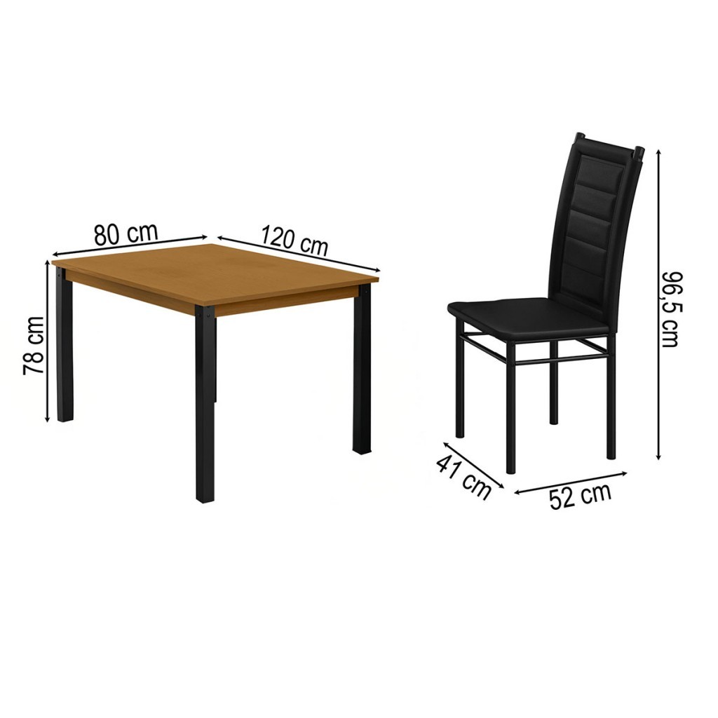 Dimensões: - Altura: 78,00 cm - Largura: 120,00 cm - Profundidade: 80,00 cm - Peso: 33,790 kg Descrição: O(a) Mesa de Jantar 4 Lugares Monaco Tokio Preto/Nature - Art Panta é produzido em Aço na escala de brilho Semi-Brilho, e possui um grau de dificuldade de montagem: Médio.Seu revestimento/acabamento é: Pintura UV e Epóxi. Infelizmente a Loja não oferece serviço de montagem, deixamos essa informação bem clara em todas as nossas páginas de produto. Onde especificamos que os móveis chegarão desmontados, e que a montagem fica por conta do cliente. Como não oferecemos esse serviço não embutimos o mesmo no preço dos produtos, ou seja, maior economia para você! Todos os nossos móveis também acompanham o manual de montagem, e caso você queira, pode realizar a montagem você mesmo, sempre especificamos os graus de montagem dos produtos. Nos casos de grau baixo e médio, com pouco ou nenhum conhecimento, você mesmo pode efetuar a montagem, e fazer essa economia. Apenas nos graus de montagem alto, recomendamos a contratação de um montador com experiência, visto que são montagens mais complicadas. A montagem é feita com Parafusos, cavilhas e Minifix.. Este móvel é indicado para que seja utilizado no(a) Sala de Jantar, dando um toque especial no cômodo de sua casa. Para que você mantenha seu produto sempre em ótimo estado, recomendamos que use apenas um pano seco ou levemente umedecido, sem o uso de quaisquer produtos abrasivos. A Loja garante aos clientes, 90 dias de garantia nos produtos, porém, recomendamos que entre em contato com o fornecedor/marca do produto, pois o mesmo(a), pode garantir um prazo maior de garantia. Lembrando ainda que: quaisquer objetos decorativos que aparecem nas imagens, não acompanham o produto. Características: - Espessura da Estrutura: 40mm - Possui Gavetas?: Não - Possui Portas?: Não - Possui Vidro?: Não - Possui Espelho?: Não - Possui Prateleiras?: Não - Possui Puxadores?: Não - Possui Ripamento?: Não - Linha ou Coleção: Monaco, Tokio - Montagem Invertida?: Não Pode ser Montado Invertido - Cor interna: Marrom e Preto - É frágil?: Não - Possui Nicho?: Não - Material da Estrutura: Aço - Escala de Brilho: Semi-Brilho - Possui Rodízios?: Não - Possui Pés?: Sim - Pés com regulagem de altura?: Não - Quantidade de Pés/Sapatas: 4 - Cadeira Estofada: Sim - Densidade do Assento: D-18 - Densidade do Encosto: D-12 - Enchimento do Assento: Espuma - Enchimento do Encosto: Espuma - Medidas da Cadeira ( A x L x P ): 96,5 x 52 x 41 Cm - Peso Suportado: 100 Kg - Quantidade de cadeiras por conjunto: 4 - Tecido: korano - Material dos Pés: Aço - Acompanha: 1 Mesa de Jantar, 4 Cadeiras, Kit Ferragem e Manual de Montagem - Acompanha Manual de Montagem: Sim - Como os Móveis Chegarão na Minha Casa: Desmontado em caixas, acompanhado de todas as peças, ferragens e manuais para montagem. - Grau de Dificuldade da Montagem: Médio - Necessita de Montagem: Sim - Sistema de Montagem: Parafusos, cavilhas e Minifix. - Acompanha Cadeiras: Sim - Acompanha Tampo: Sim - Formato da Mesa: Retangular - Material do Tampo: MDF/MDP - Peso Suportado no Tampo: 40 Kg - Quantidade de Lugares: 4 - Garantia (dias): 90 - Indicação de Uso: Sala de Jantar - Observação: Objetos decorativos que aparecem nas imagens, não acompanham o produto. - Recomendação de Manutenção: Utilizar pano levemente umedecido, seguido de pano seco. Não utilizar quaisquer produtos abrasivos. - Revestimento /Acabamento: Pintura UV e Epóxi
